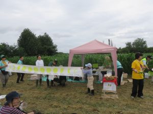 ずっとお世話になっている農家の島田さん。年に1度の里芋収穫で島田さんと会えるのを楽しみにしているリピーターも多く、合わせて15家族50人余りが集まりました。