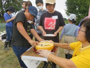 〇内容 里芋の収穫、お月見のしつらえ、チーズ削り体験