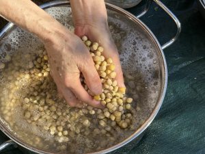 ほんとうは2日前から大豆を洗って20時間以上水に浸して、4時間以上煮るところか
